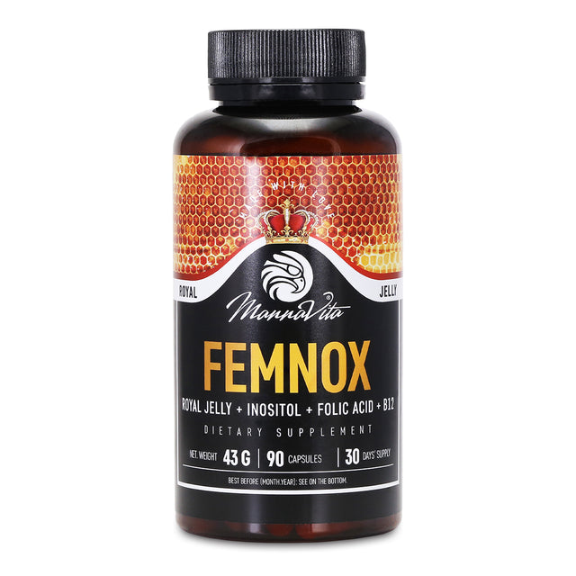 Ett komplex som innehåller mycket koncentrerad bidrottninggelé, inositol, folsyra, och naturligt vitamin B12. Femnox stödjer kvinnokroppen i att uppnå balans. Det rekommenderas för öka fertiliteten, balansera östrogen / progesteron nivåer, stödjande PCOS och endometriosbehandling, och lindrande menopausala symtom.