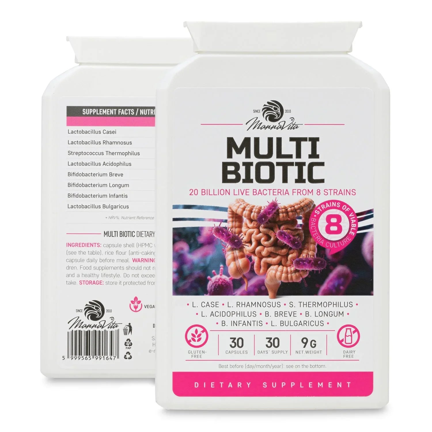 Multi Biotic probiotika • 20 miljarder bakterier från 8 stammar • 30 kapslar